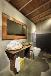3 bathrooms with hot water; open-air rainfall showers; plush towels.
